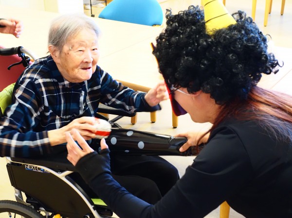 2月3日の節分は、ご利用者様に豆(紙のボール)を投げていただき
