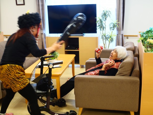 鬼の職員に向かって、楽しそうに(笑)