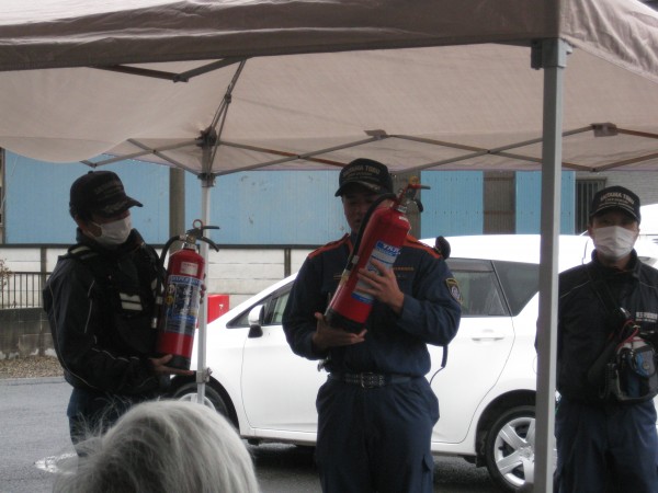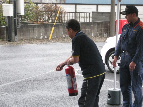 火事が多い季節とのことで久喜市消防署の協力のもと正しい消火訓練や通報訓練、避難誘導訓練を行いました。