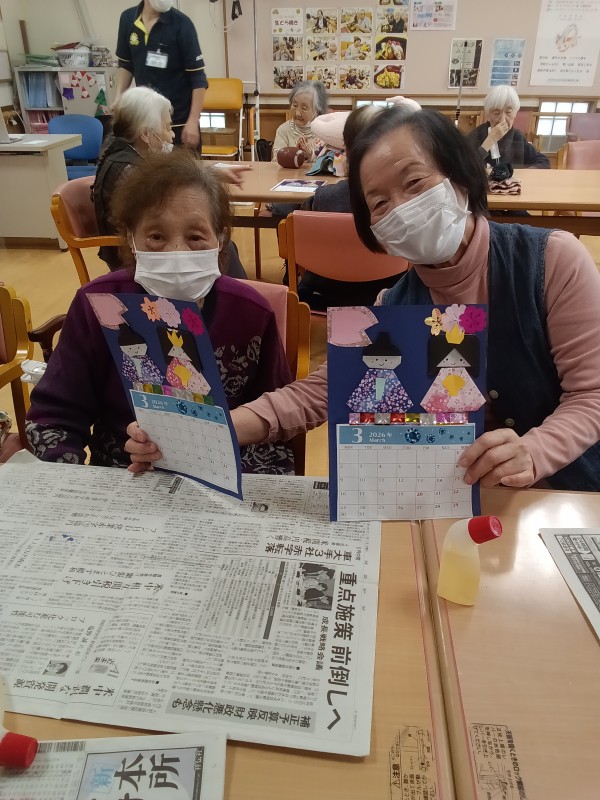今日はレクリエーションで、カレンダー作成をしました(^^)/