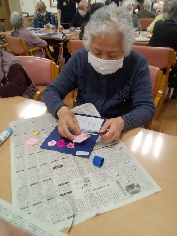 貼り方は自由で、人によって花の位置が違かったり、皆さんきれいに張り合わせてくれました♪