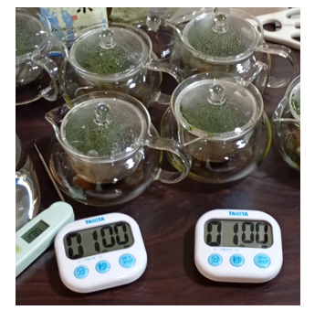 煎茶の方はタイマーと温度計を用いて正確に、チョコタルトの方も職員のお手製です。