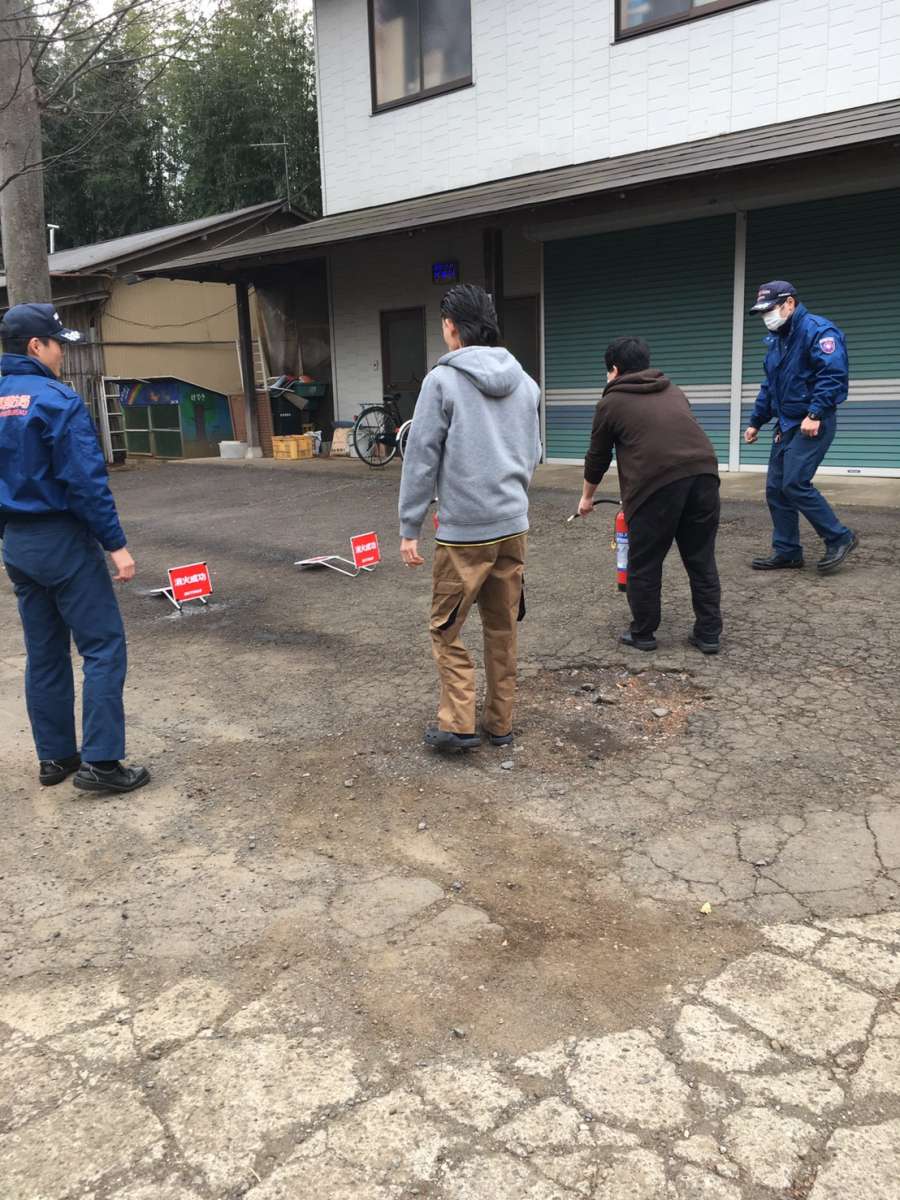 職員は、消防署の方に消火器の使い方を教えていただき、訓練用の消火器で消火訓練をしました。