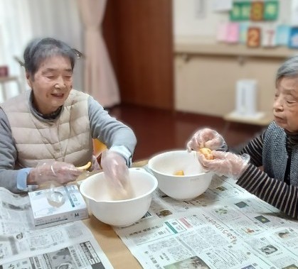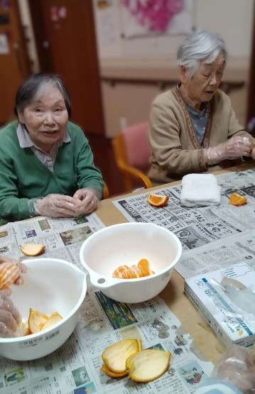 みんなで皮をむいて