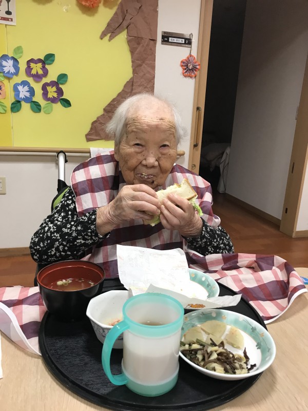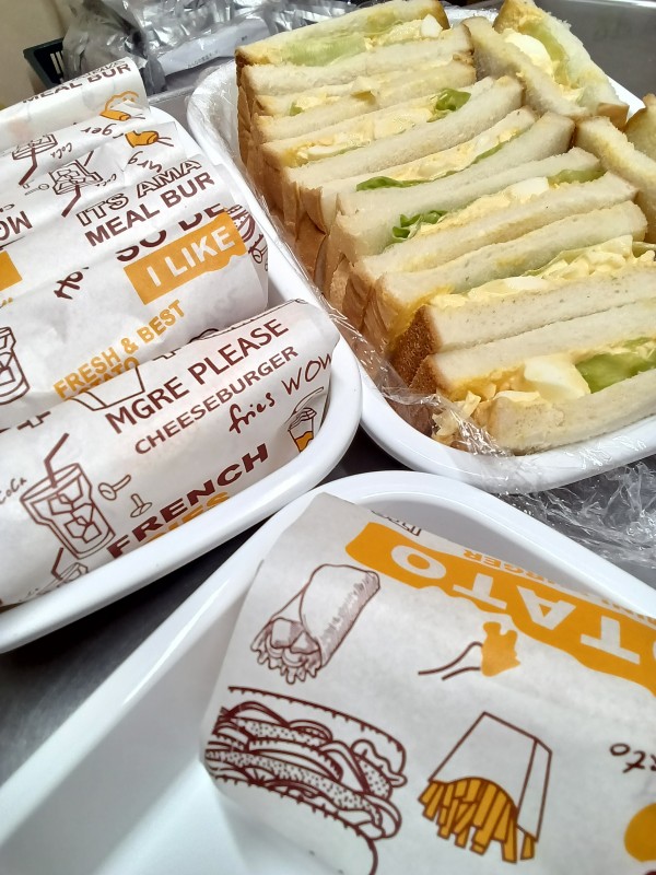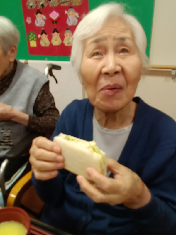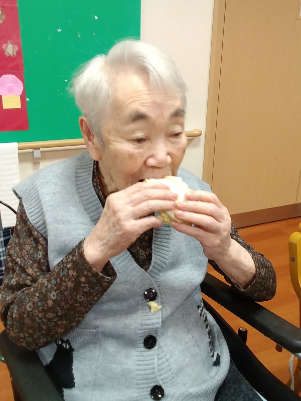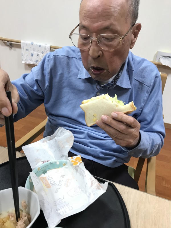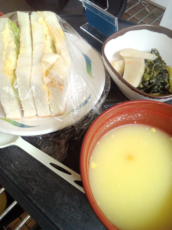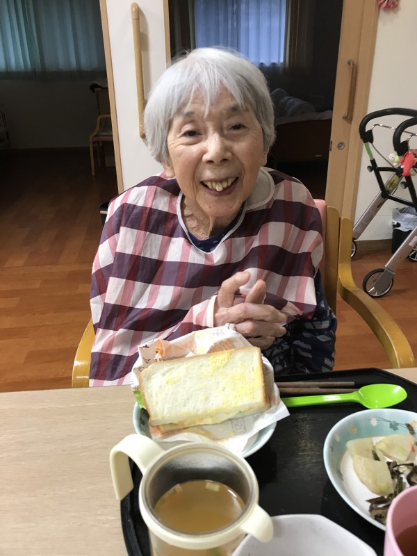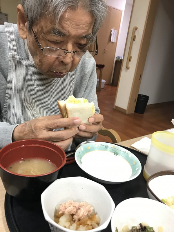 今朝のホームの朝食は玉子をたっぷりはさんだ