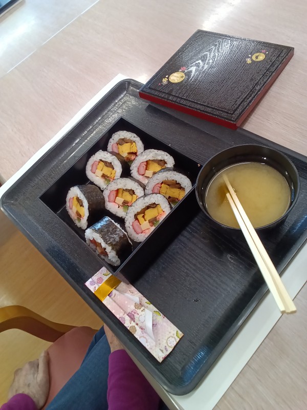 節分の日は皆様で恵方巻の昼食を笑顔で召し上がっている様子をお伝えします(≧▽≦)