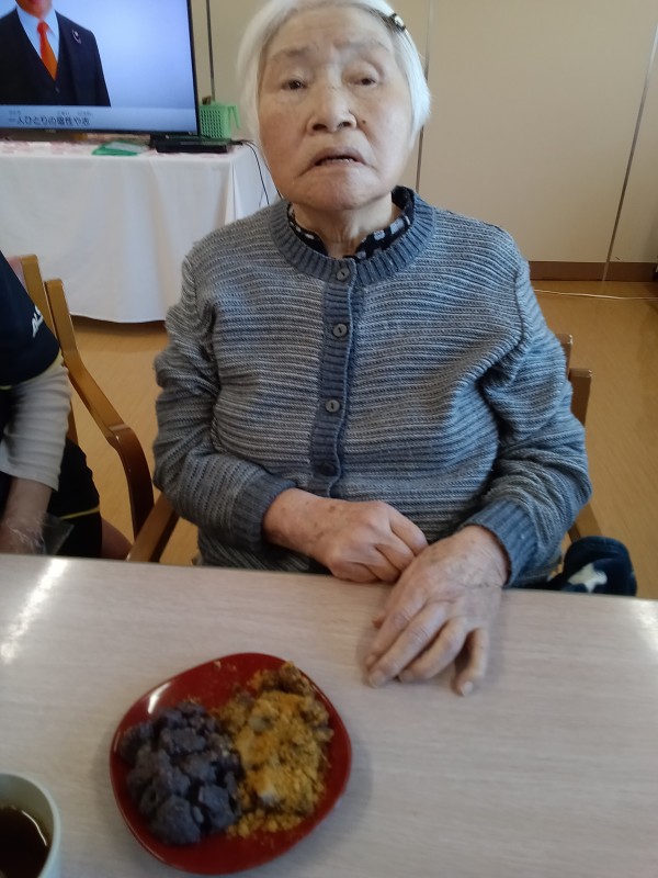 節分の日は恵方巻の昼食後は大好評の「ヤオコーのおはぎ」を召し上がっていただきました様子をお伝えします(≧▽≦)
