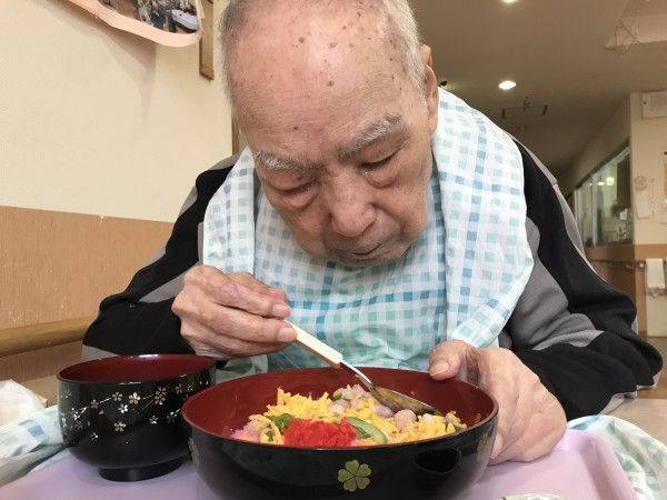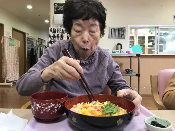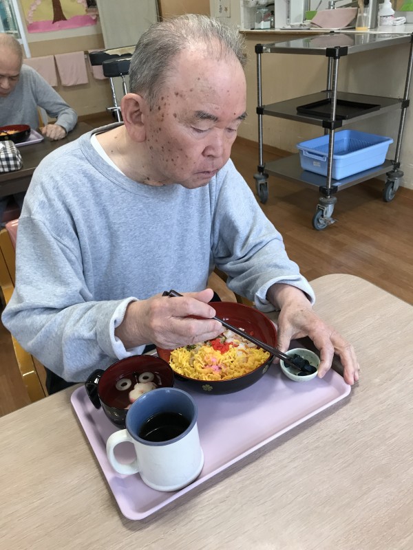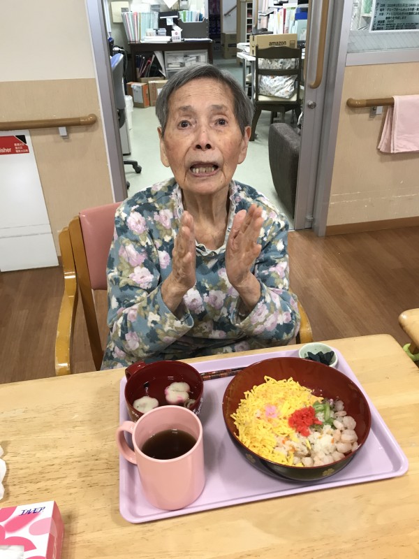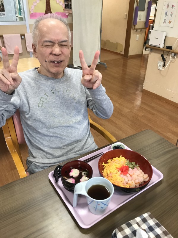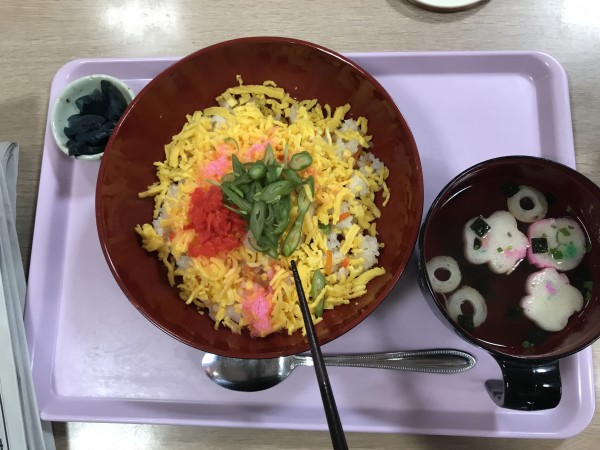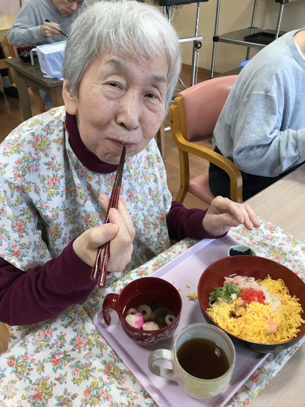 横浜三保2では、ひなまつりの行事食という事でちらし寿司とひなあられを食べました(╹ڡ╹ )