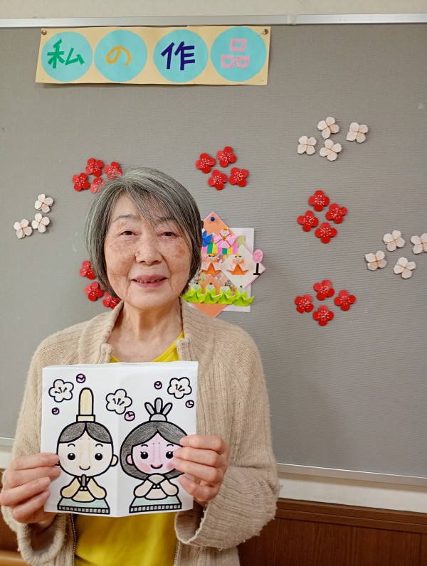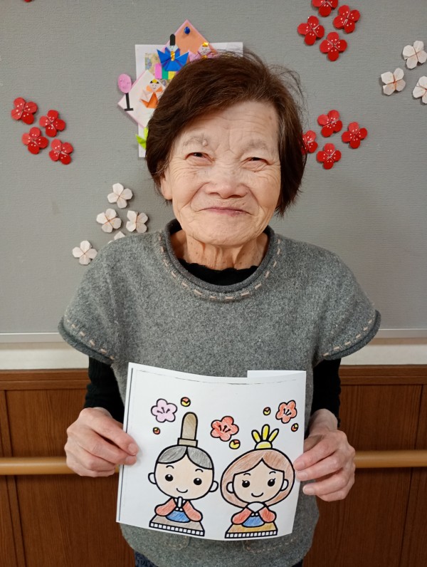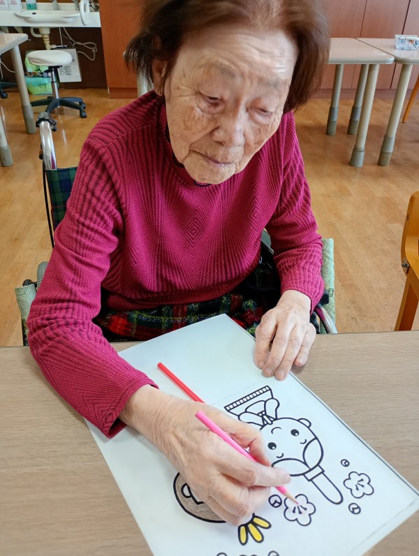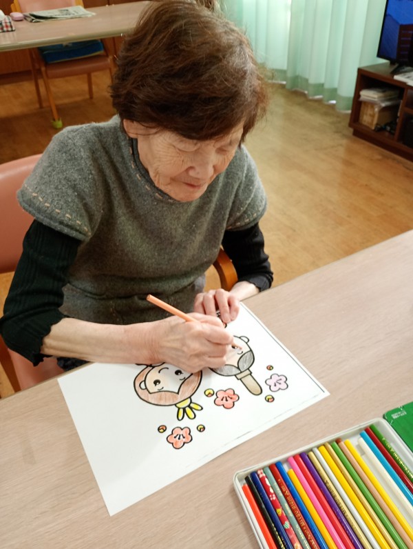 今日は雛祭りの塗り絵を楽しまれる様子をお届けします。