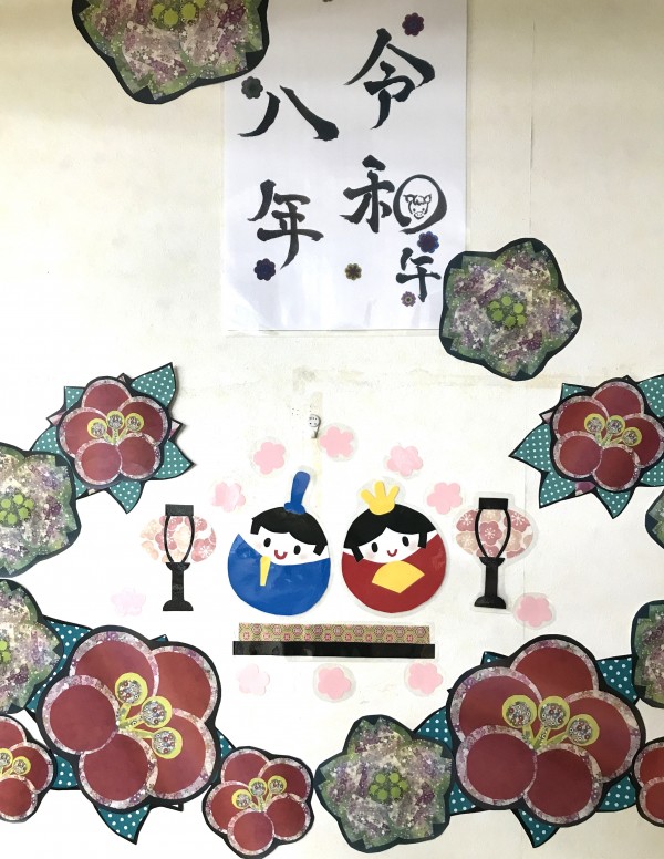 春に向けての模様替えと、明日のひな祭りに向けての準備をお知らせ致します