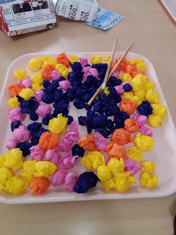 手のリハビリにもなるのでお箸を使うレクリエーションは継続していきたいと思います。