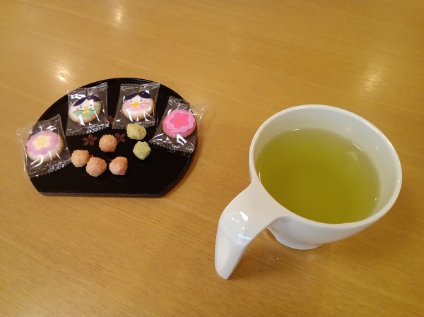 今年は、おやつレクとして、ひな祭りのデザインがされたビスケットとあられをご用意しました。
