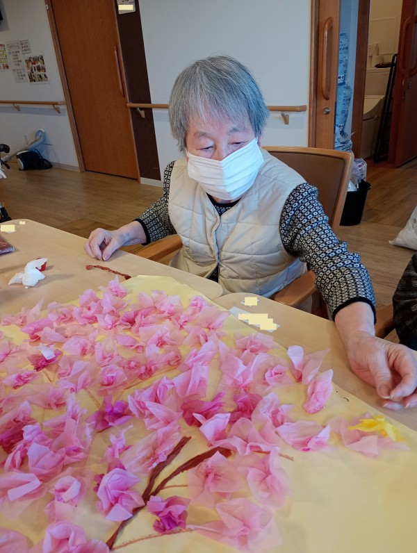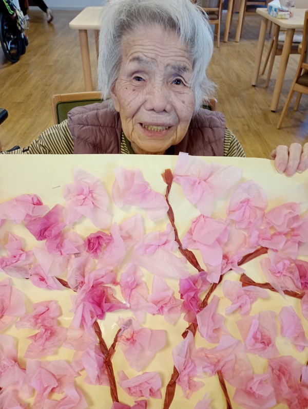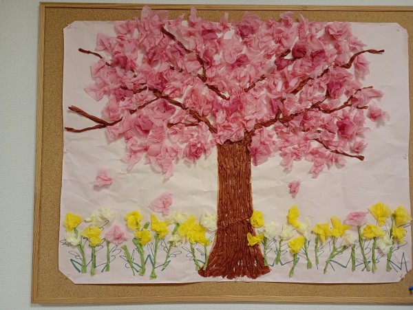 出来上がった作品は、3階の廊下と食堂に飾っています。面会にいらした際にぜひご覧ください。