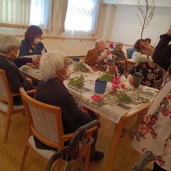皆さん集まって 今日使うお花の説明。。