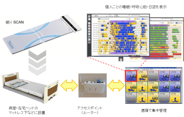 利用者様の呼吸、心拍などの自然な睡眠を計測します。