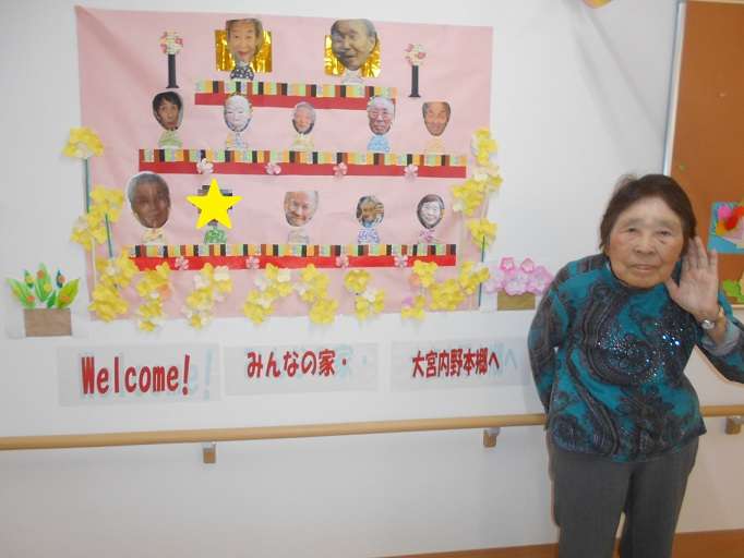 こんにちは、今日は(2月13日)一階のご利用者様とスタッフのひな祭りの飾りつけ!