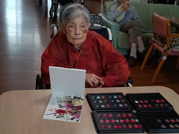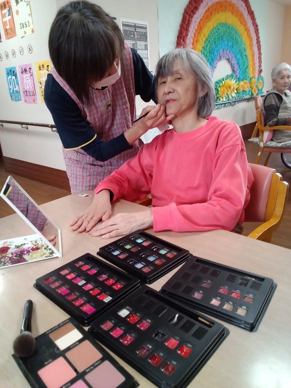 某大手化粧品会社にお勤めの経験があるスタッフにより、ご希望のご利用者様にお化粧をしていただきました。
