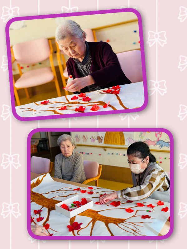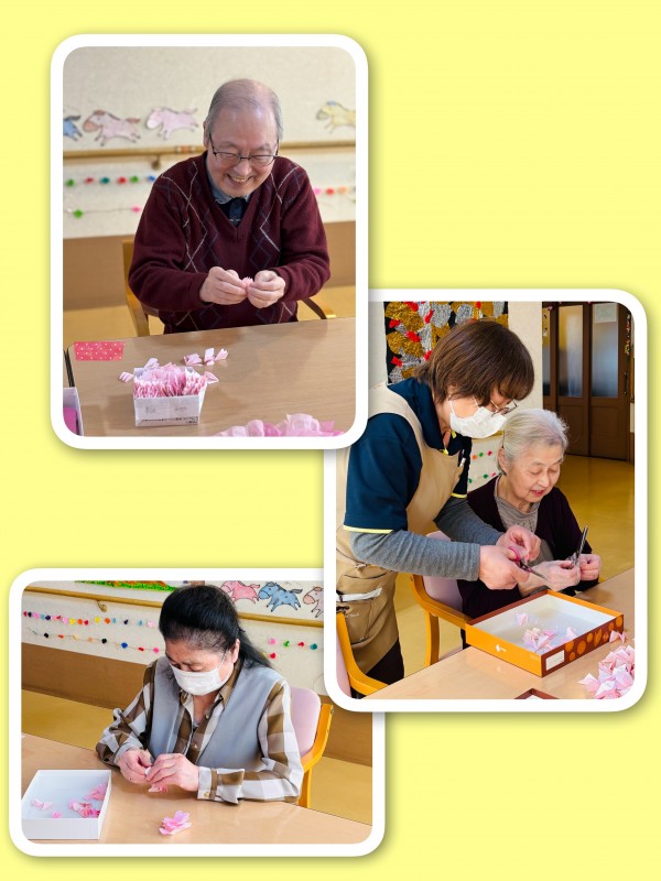 今回は壁飾り制作のご様子です。お正月飾りの次は…春の訪れを感じる壁飾りを制作しました。