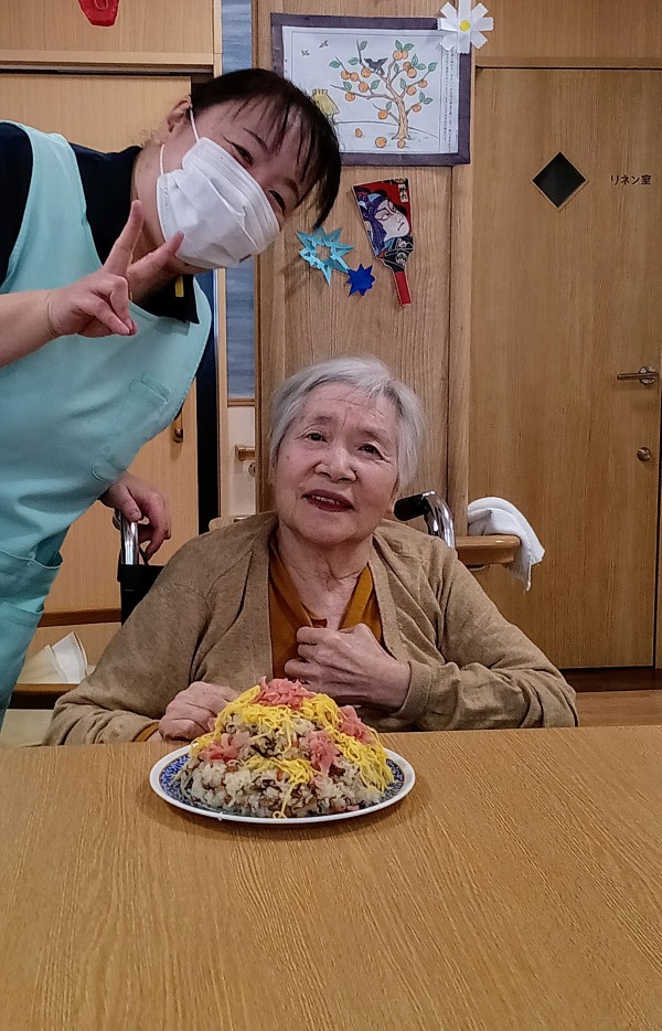 2月の終わり頃、2Uでは節分豆を使ってちらし寿司ケーキを作りました〜(^o^)v