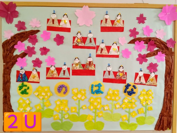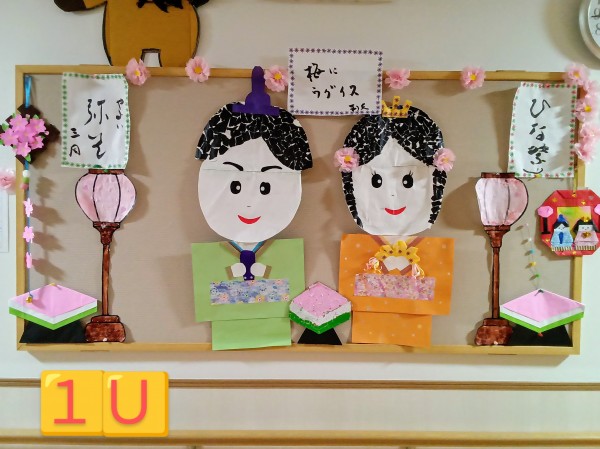 各フロアでは皆さん協力してひな人形の飾りを作成し、とても華やかな雰囲気となっています(*^^*)