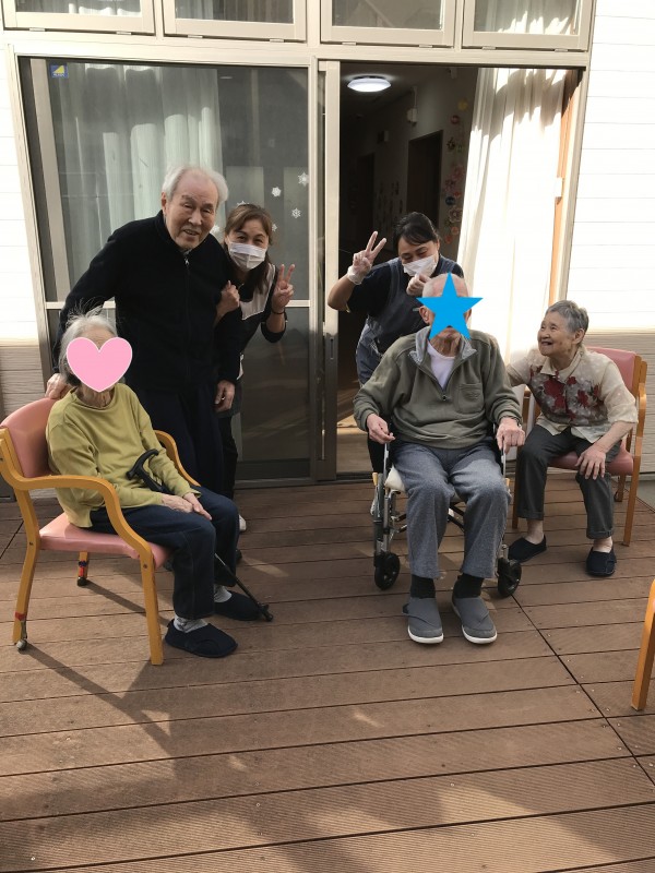 そして、お天気が良かったのこともあり、お隣の利用者様も含めみんなで日向ぼっこをしました~