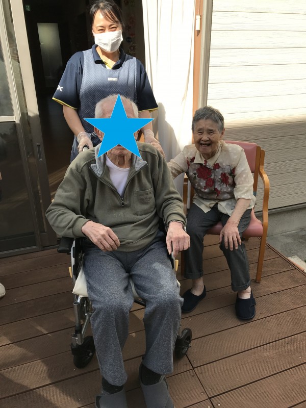 たまたまテラスに出たら、お隣の利用者様が日向ぼっこをされていたので合同日向ぼっこになりました~