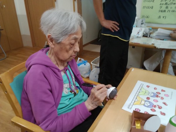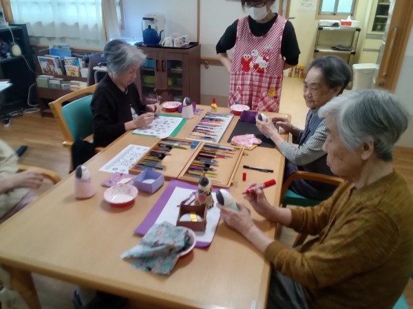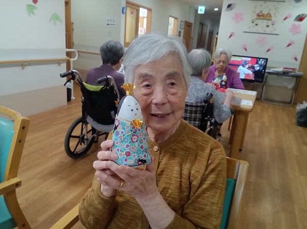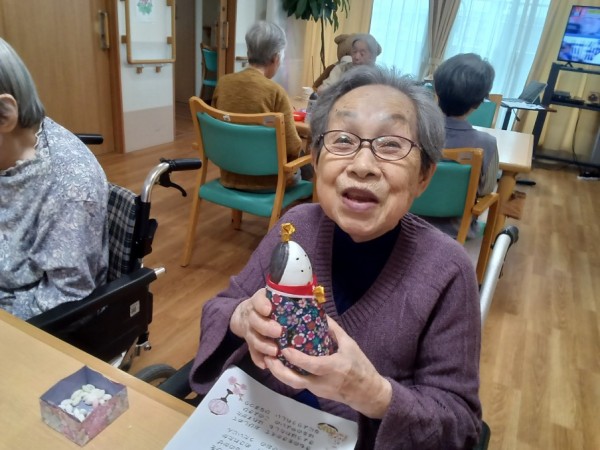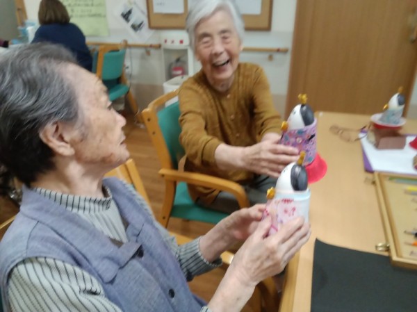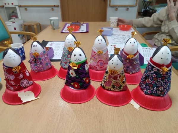 こんにちは、グループホームみんなの家川崎新百合ヶ丘の介護ブログです。今回は、ひな祭りのご様子の続きです。昼食を召し上がられた後にはレクリエーションとして、皆さんに雛人形を作って頂きました。難しいと仰られながらも、楽しまれながらそれぞれ個性的なお顔のお雛様を作られておられました。