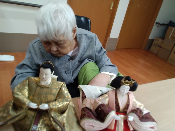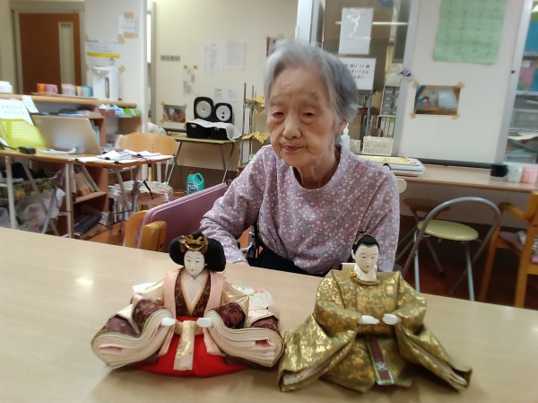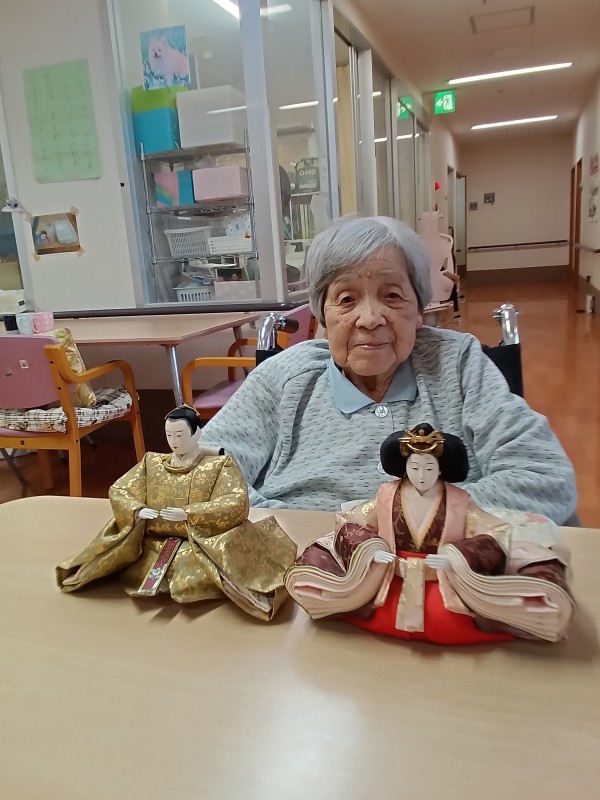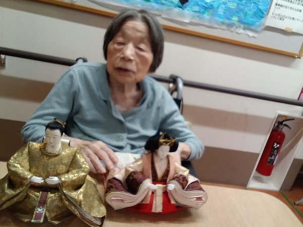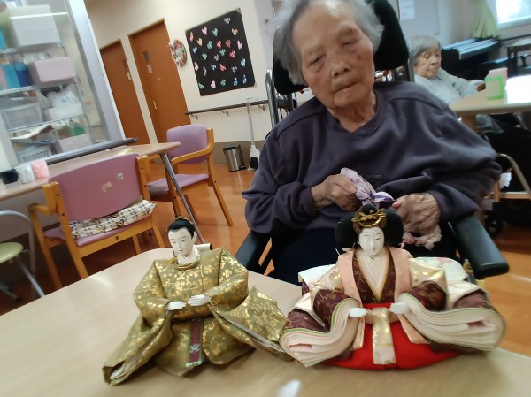 3月3日はひな祭りという事で、お内裏様とお雛様との記念撮影をしました。