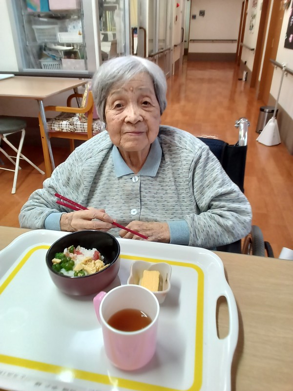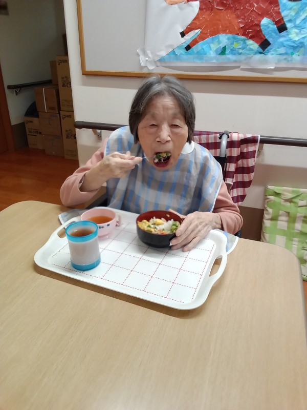 この日の昼食は握り寿司をご用意しました。握りの状態で食べられない方には