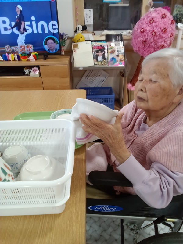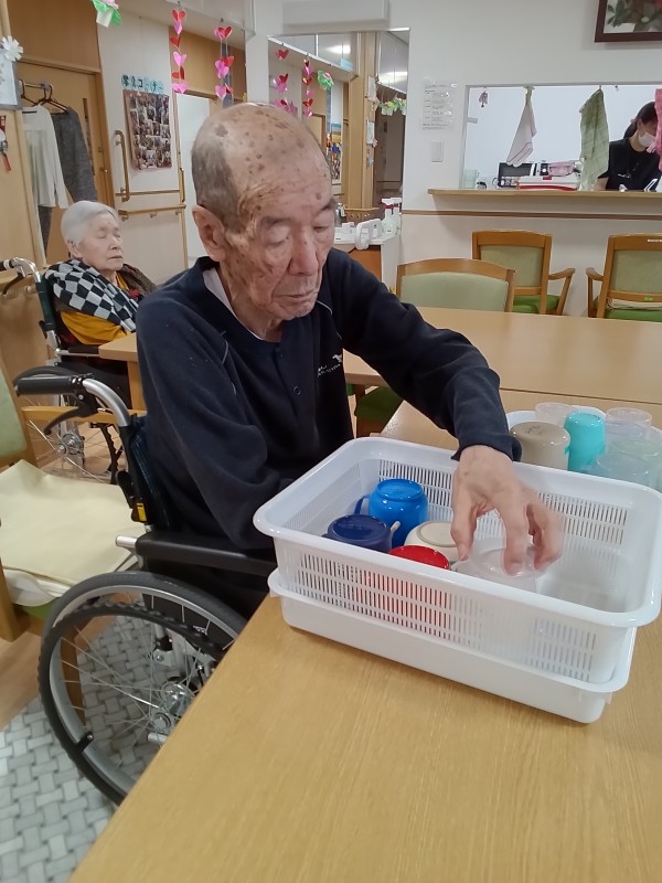 お食事の後、利用者様がお手伝い