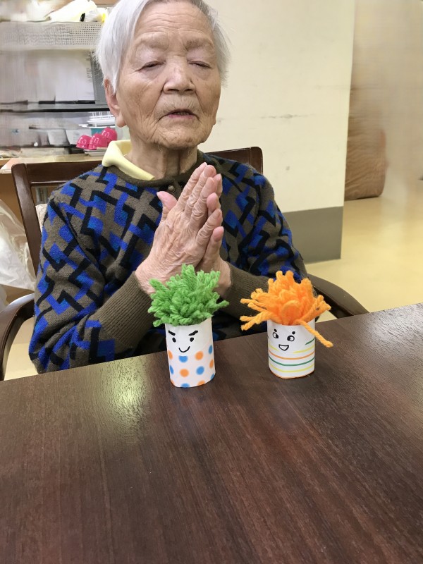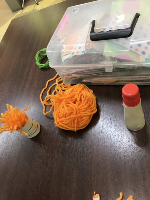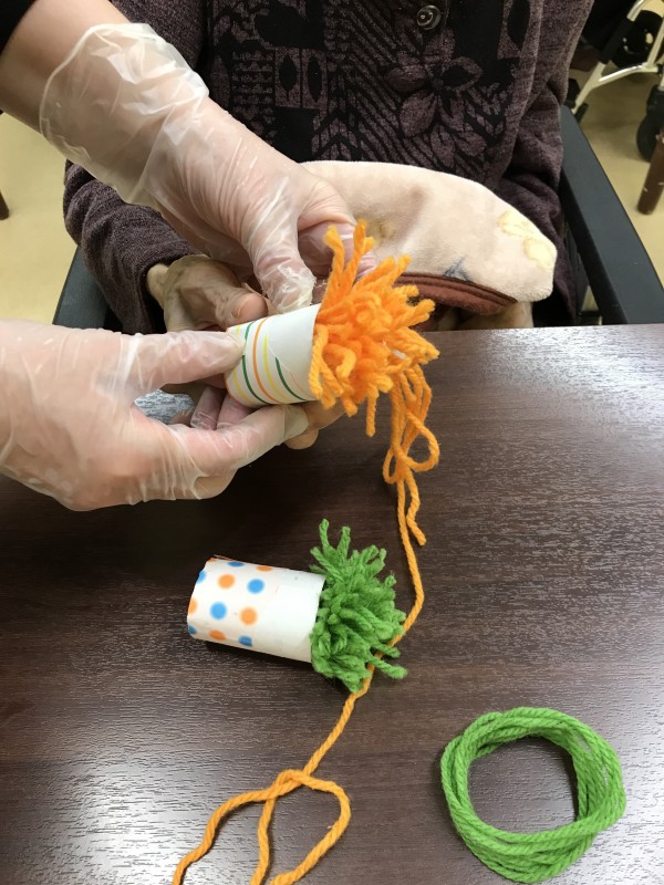 折り紙や毛糸、トイレットペーパーの芯を使ってつくりました