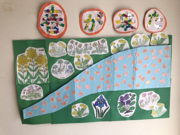 春が待ち遠しい季節になってきました。本日は「花」(民謡)を歌いながら、皆で川を作り、お花もたくさん作りました!