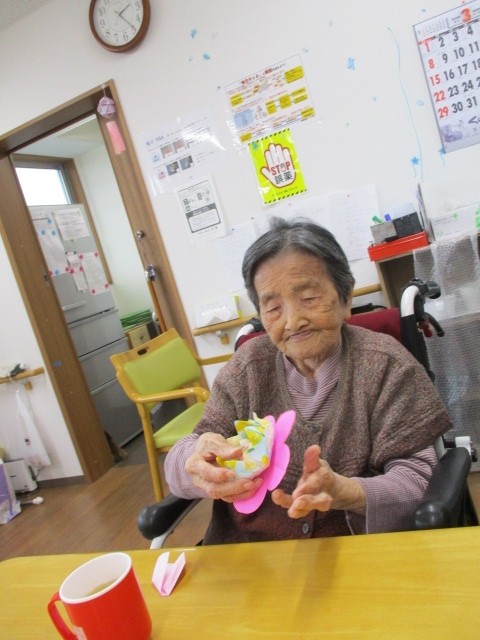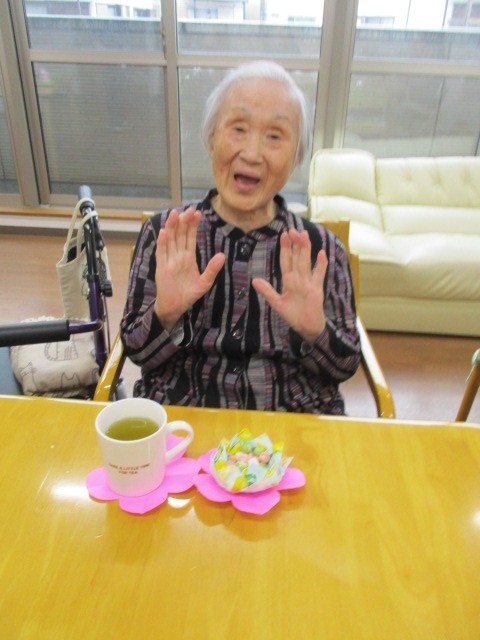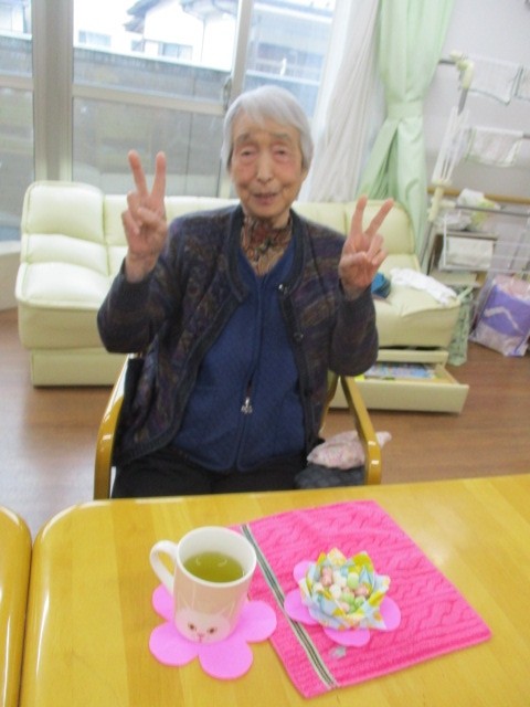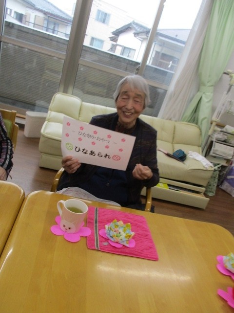 ひなあられをご用意しました。嬉しそうですね~! ニコニコされています(*^_^*)