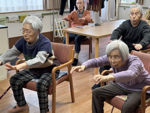 今日の体操は、リズムに合わせて行う「いきいきリズム体操」。ご機嫌な音楽のリズムに自然に身体も動きます。