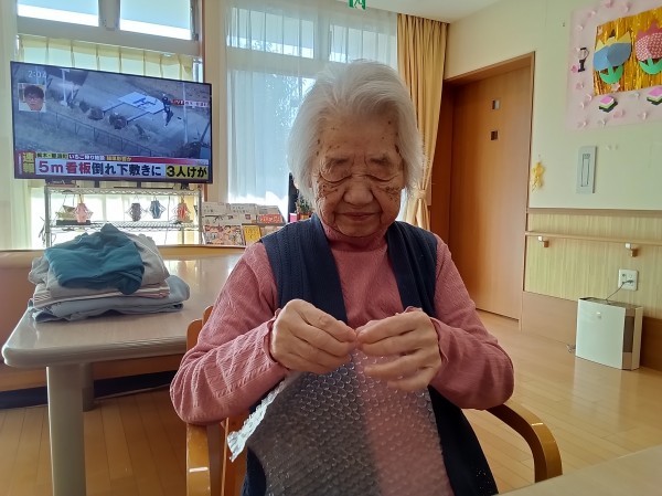 ゲームを楽しまれた後は、指先の運動にもなるぷちぷち(梱包材)潰しにも挑戦されました(^^