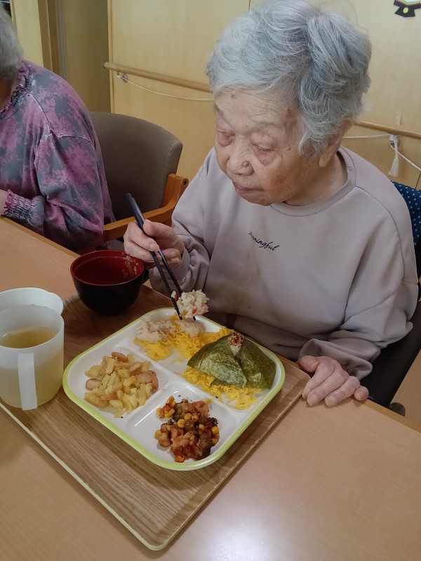 お雛様風のおにぎりを作った食レクの様子について紹介したいと思います。