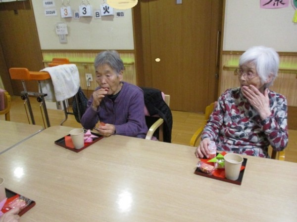 三月三日は女の子のお祭り皆さん楽しみおやつにひなあられをいただきました(*^-^*)