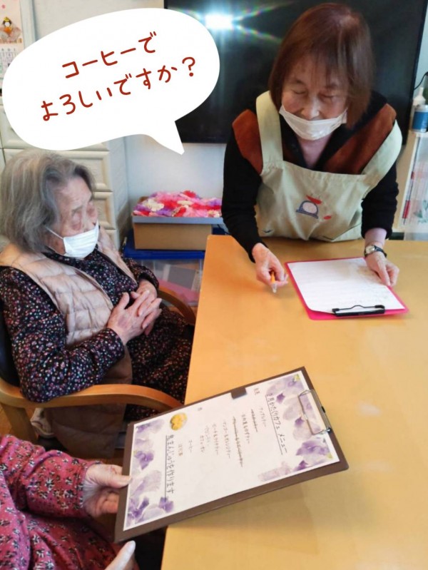 ウェイトレスさん役を頼んで注文をとっていただきます。