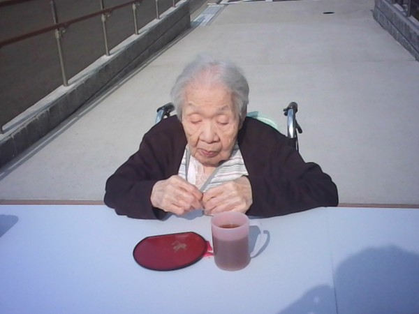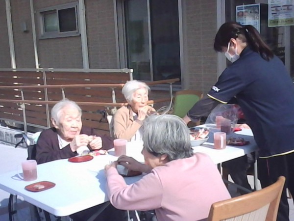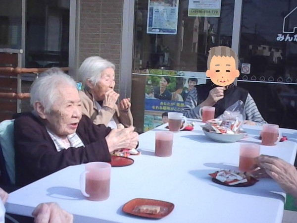 入居者様皆様外でお菓子とお茶を召し上がれるなんて贅沢ですわと仰っておりました(^_-)-☆