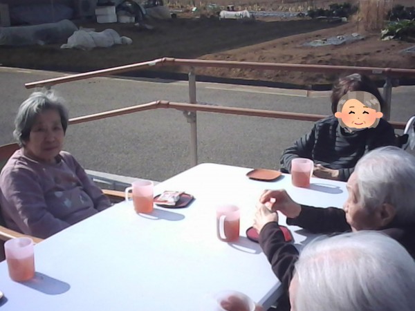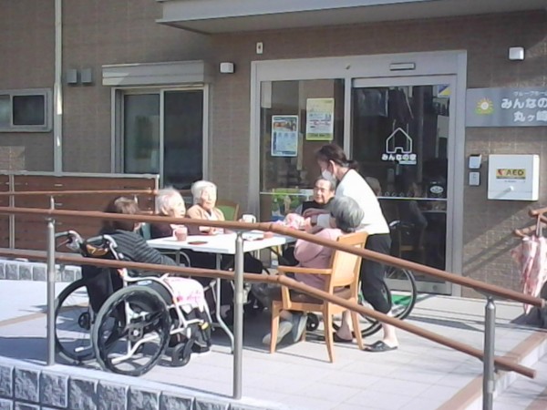天気のいい日の外気浴で1階、2階合同でお茶会を行いました