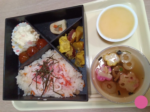 先日、ひな祭りに合わせて行事食を楽しんでいただきました(#^^#)