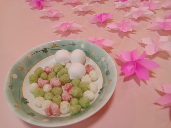 桃カルピスと、コロコロと可愛らしいひなあられ。