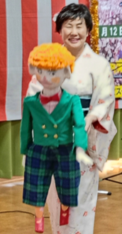今度はこちらが体操します。お人形のケンちゃんと一緒に体操とじゃんけんをしましょう。