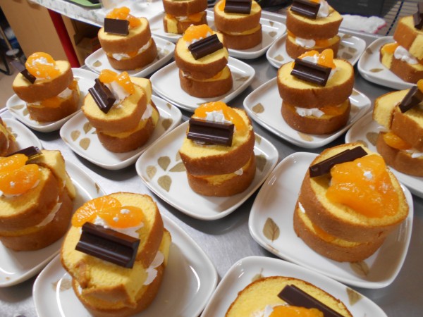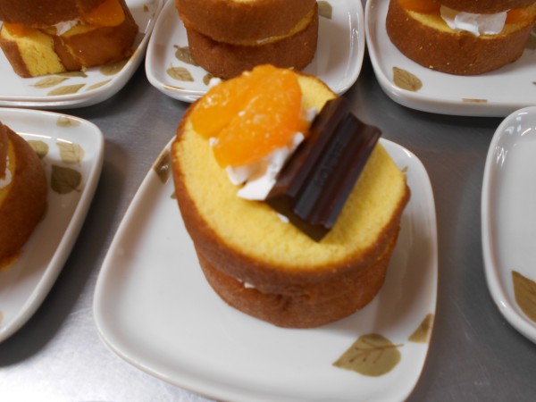 おやつはロールケーキにホイップクリーム、みかん、チョコをトッピングしました(*^^*)