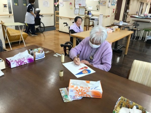 レクリエーションとしてみなさまに塗り絵をしていただきましたよ