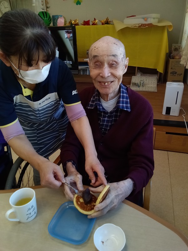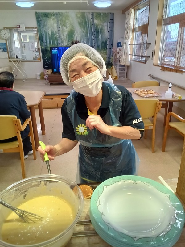 今日は、おやつレクリエーションとして「どら焼き」に挑戦!