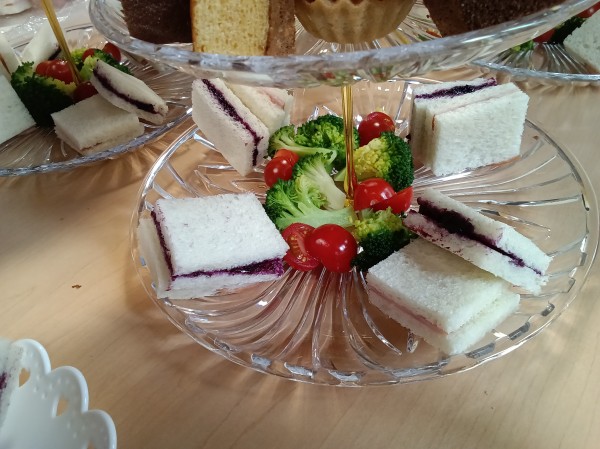 ハムサンド&ブルーベリージャムサンドにブロッコリー・ミニトマトを添えて