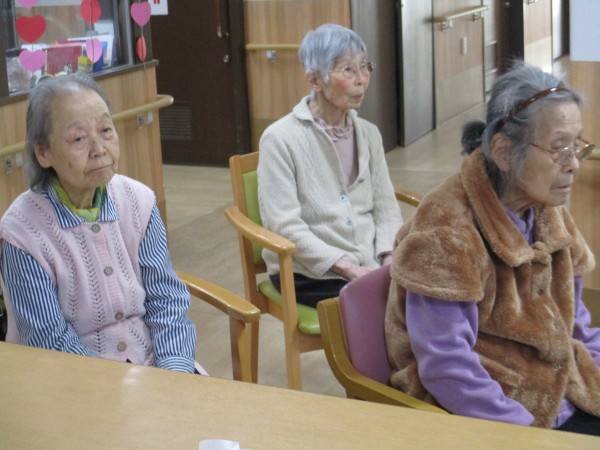 さて、体操の始まりです。本日の皆様の体調の確認が終わると、日付の確認を大きな声を出し手と体を動かしながら