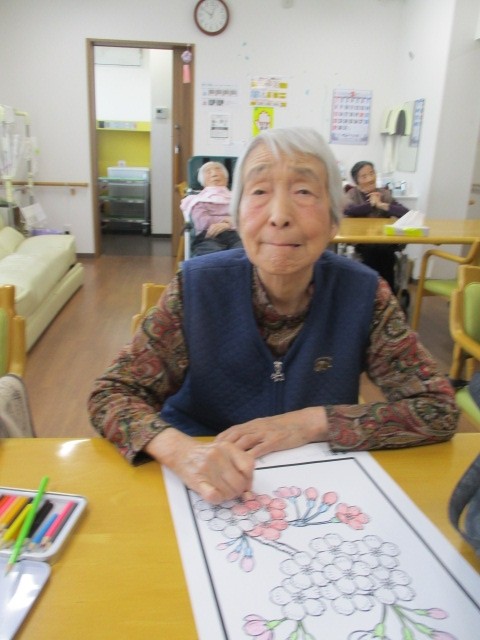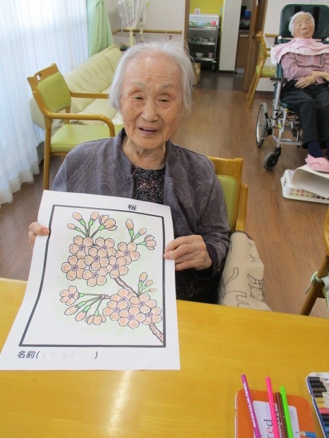 今日は2階で桜の塗り絵を行いました。 塗られているご様子をお知らせいたします!!