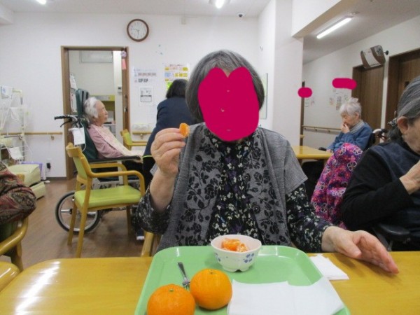おみかんとあめです。 嬉しそうに召し上がれていました(*^_^*) 美味しい・美味しかった!と話されておりました!!